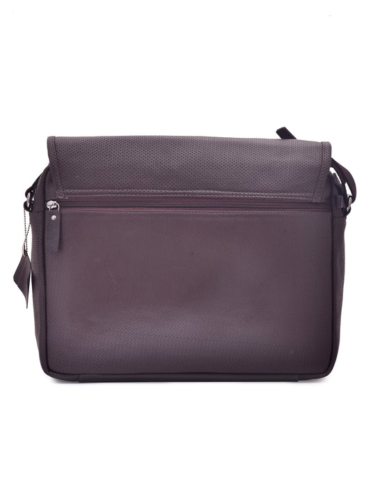 Unisex Brown Punch Printed Genuine Leather Laptop Messenger Bag 14 Inch (OMLB-009-P-BROWN)