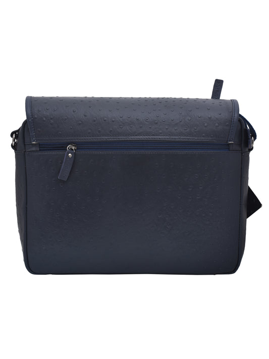 Unisex Navy Ostrich Textured Leather 14 Inch Laptop Bag for MacBook (OMLB-009-O-BLUE)