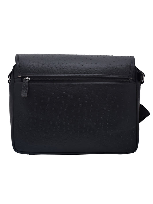 Unisex Black Ostrich Leather Messenger Laptop Bag 14 Inch (OMLB-009-O-BLACK)