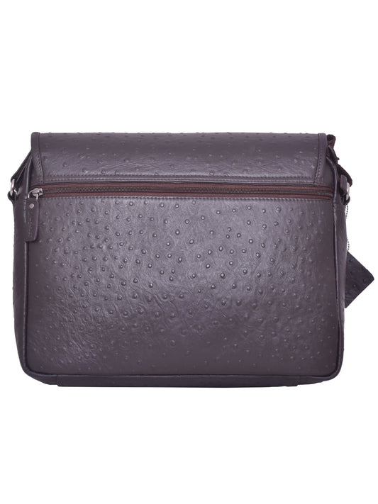 Unisex Brown Ostrich Textured Genuine Leather Laptop Bag 14 Inch (OMLB-009-O-BROWN)