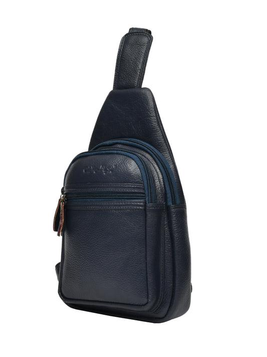 Textured Navy Blue Crossbody Leather Backpack (OMCB-036-BLUE)