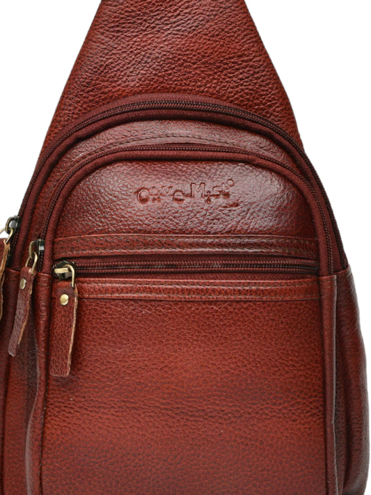 Textured Crossbody Leather Backpack (OMCB-036-B-BROWN)