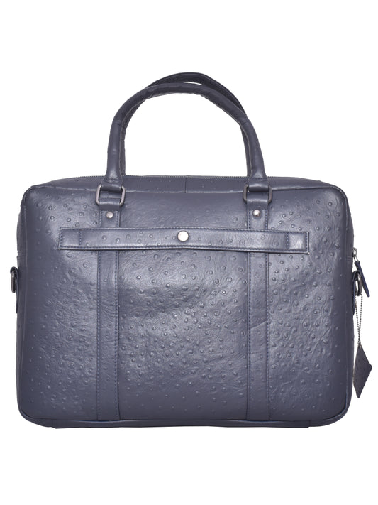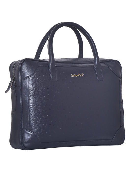 Unisex Navy Ostrich Textured Leather Laptop Bag 16 Inch (OMLB-006-O-BLUE)