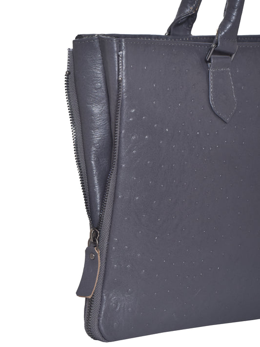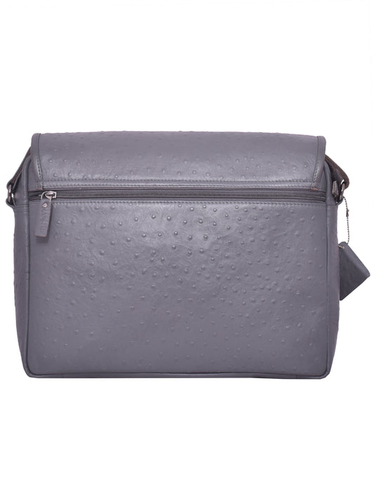 Unisex Grey Ostrich Textured Genuine Leather Laptop Bag 16 Inch (OMLB-008-O-GREY)