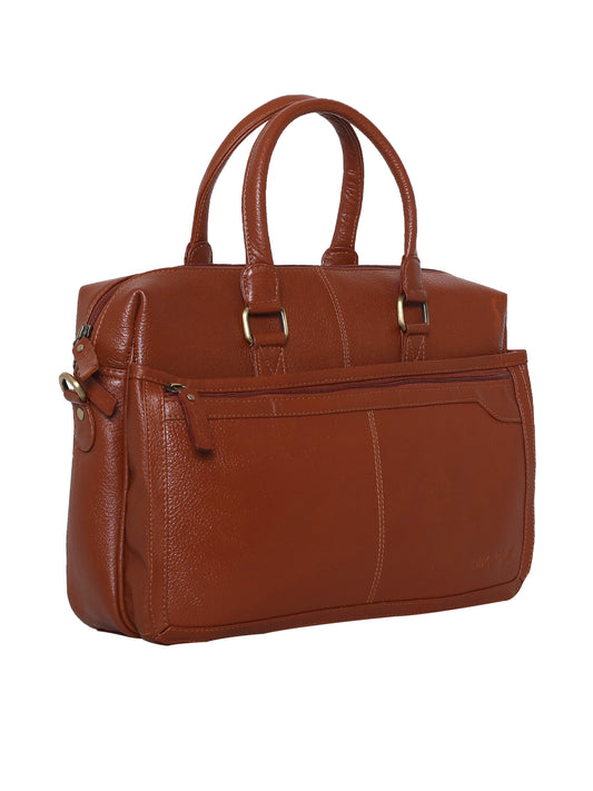 Unisex Tan Solid Leather Laptop Bag 16 Inch (OMLB-022N-TAN)