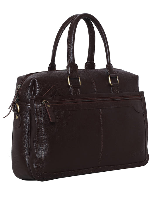 Unisex Coffee Brown Solid Leather Laptop Bag 16 Inch (OMLB-022N-C-BROWN)
