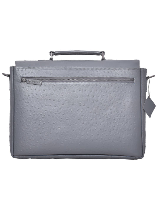 Unisex Grey Ostrich Textured Leather Laptop Bag With Lock & Key 16 Inch (OMLB-004-O-GREY)