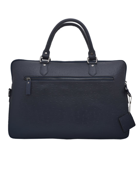 Unisex Navy Blue Ostrich Printed Leather Laptop Bag 16 Inch (OMLB-001-O-BLUE)