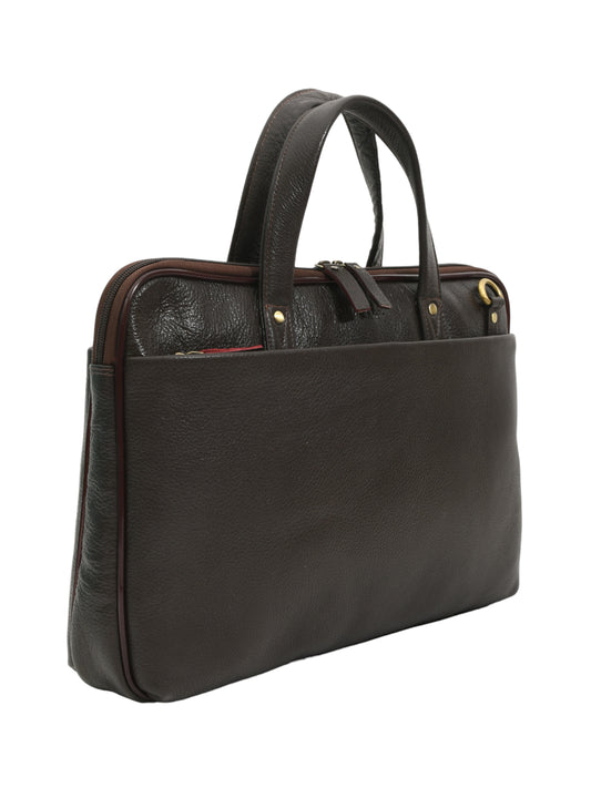 Unisex Genuine Leather Chocolate 16 Inch Laptop Bag (OMLB-027N-C-BROWN)