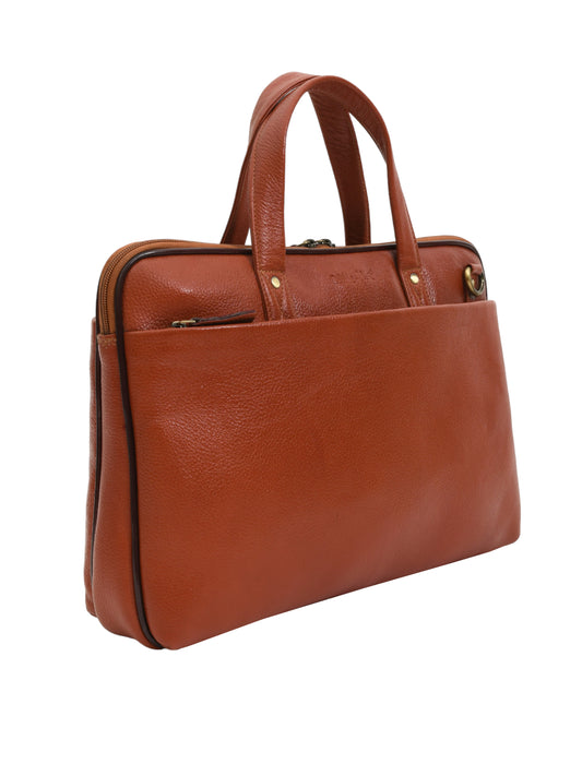 Unisex Genuine Leather Tan Laptop Bag for 16 Inches (OMLB-008-TAN)