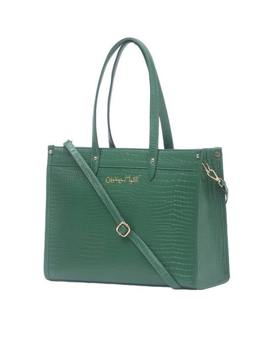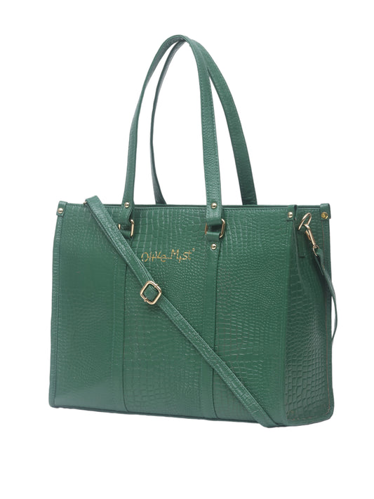 Women Textured Leather 16 Inch Laptop Handheld Bag (OMLBW-003N-GREEN)
